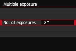 - If the power switch is set to <OFF> or the battery is replaced after you set multiple exposure settings, multiple-exposure shooting will be canceled.
