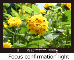 When focus is achieved, the AF point which achieved focus will flash briefly in red, and the focus confirmation light [