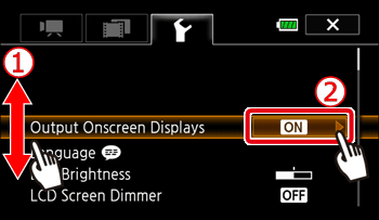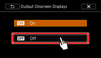 6. Confirm that the [Output Onscreen Displays] setting is [On], and then touch the button.