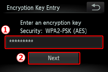 Touch the input field, enter the encryption key on the displayed keyboard, and then