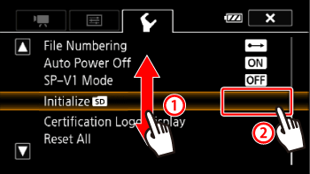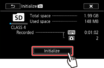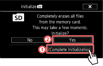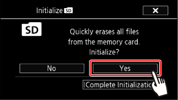 - If you selected the [Complete Initialization] option, you can touch [Cancel] to cancel the initialization while it is in progress. All recordings will be erased and the memory can be used without any problem.