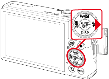 ) switch located on the side of the camera to raise the flash, then configure the setting. - <Flash> cannot be set to [On] in the following modes: