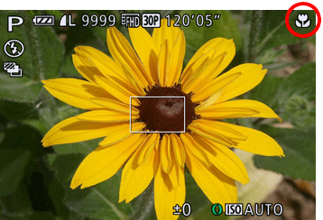 If you are shooting a subject at a close distance, and if the subject cannot be easily focused within the normal shooting range, switching the normal mode to the [Macro] () mode will make it easier to focus on the subject.