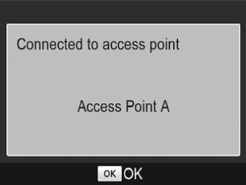 - Once the printer is connected to the access point, the screen at left is displayed. Check the indicated access point name and press the <OK> button.