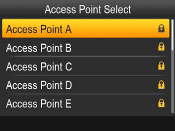 - Up to 20 access points are listed. If your desired access point is not listed, press the <