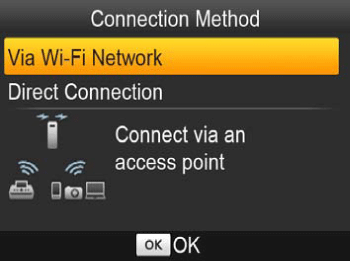 > buttons to select [Via Wi-Fi Network], and then press the <OK> button.