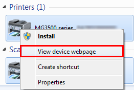 (5) Right-click on the MG3500 series icon (MG3500 series_xxxx), select [View device webpage] from the menu.