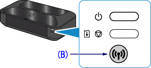 1. Hold down the Wi-Fi button (B) on the printer until the (white) POWER lamp flashes 2 times, then release the Wi-Fi button after the second flash.