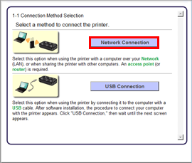 If you will be installing the Canon printer driver on Mac OS X and using the printer through a network connection, you can select [ Bonjour ] or [ Canon IJ Network ] in the [Add Printer] dialog.