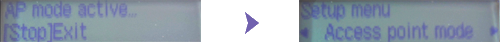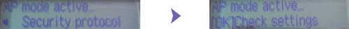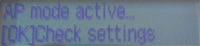 9. Press the Back button. When "Access point mode active" is displayed, the printer is properly set in the access point mode.