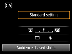 Ambience-based shotsYou can choose the ambience you want to convey in your images. Press the <