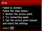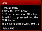 The screen appears when connections are being attempted from multiple access points simultaneously. Wait for a while, then configure WPS settings again. Press the WPS button on only one access point.
