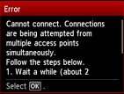 - Cannot connect. Connections are being attempted from multiple access points simultaneously.