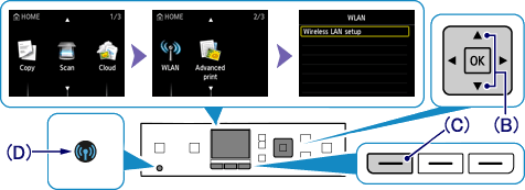 The Wi-Fi lamp (D) flashes when wireless connection is enabled.