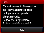 - Cannot connect. Connections are being attempted from multiple access points simultaneously.