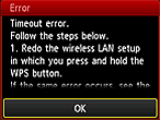The screen appears when connections are being attempted from multiple access points simultaneously. Wait for a while, then configure WPS settings again. Press the WPS button on only one access point.