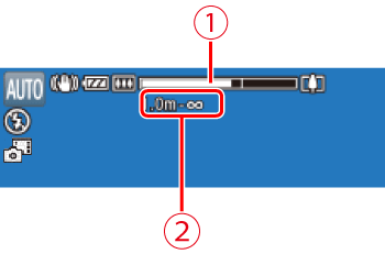 • To zoom in and enlarge the subject, move the zoom lever toward <> (telephoto), and to zoom away from the subject, move it toward <> (wide angle). (A zoom bar showing the zoom position is displayed, along with the area in focus.)