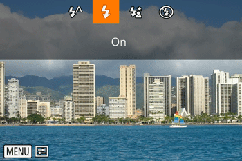 ] switch to raise the flash, then configure the setting. - The <Flash> cannot be set to [On] in the following shooting modes: