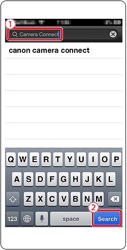 4. Choose [Camera Connect] from the displayed search results, and install it on the iPhone.After installation has been completed, tap the [Home] button to return to the Home Screen.
