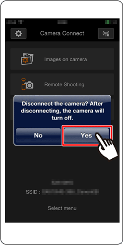 [On]. In this case, enter the password displayed on the camera in the password field on the smartphone when it is displayed.- After confirming that the smartphone and the camera are connected, touch the [Home Button] to return to the [Home Screen].
