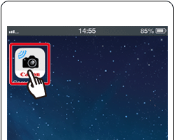 [On]. In this case, enter the password displayed on the camera in the password field on the smartphone when it is displayed.- After confirming that the iPhone and the camera are connected, touch the [Home Button] to return to the [Home Screen].
