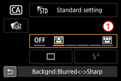 ]mode, you can set the following functions for shooting with background blur. The default settings are the same as the [