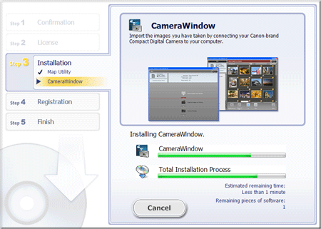 - In the example procedure below, the [DIGITAL VIDEO CAMERA Software] has been downloaded from the Canon homepage and the used to install the [CameraWindow] software on a computer running Windows 7. The installation procedures and screens displayed may differ depending on the operating system, or the software you use.