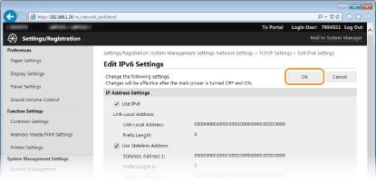 - Make sure that the Remote UI screen can be displayed with your computer by using the IPv6 address of the machine.