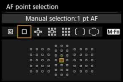 : AF point expansion (Manual selection ) | The manually-selected AF point [ ] and adjacent AF points [ ] (above, below, on the left, and on the right) are used to focus. |