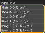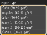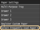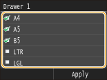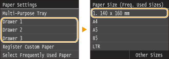 - Of the registered paper sizes, only those that can be loaded in a paper drawer are displayed.