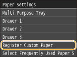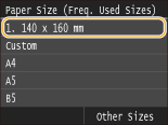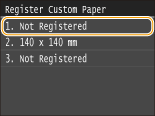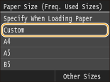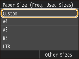 Selecting a Registered Custom Paper SettingThe paper sizes that are registered in the procedure above are displayed on the screen for selecting the paper size.