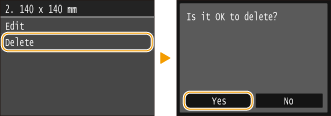 - If paper sizes <1> to <3> have already been registered, either change or delete the setting to continue. The procedures for changing and deleting these settings are described below.