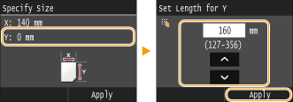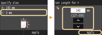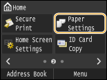 - After the default paper setting is registered, the paper setting screen is not displayed when paper is loaded, and the same setting is always used. If you load a different paper size or type without changing the paper settings, the machine may not print properly. To avoid this problem, select <Specify When Loading Paper> in step 3, and then load the paper.