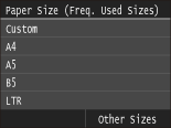 - Paper sizes that are not selected can be viewed by tapping <Other Sizes> in the paper size setting selection screen.