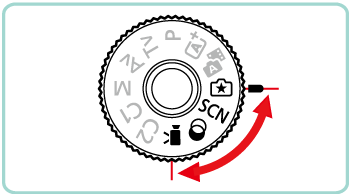2. Turn the mode dial and set it to one of the modes within the area indicated in the image below.