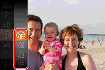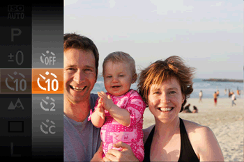 With the self-timer, you can include yourself in group photos or other timed shots. The camera will shoot about 10 seconds after you press the shutter button.