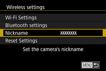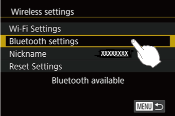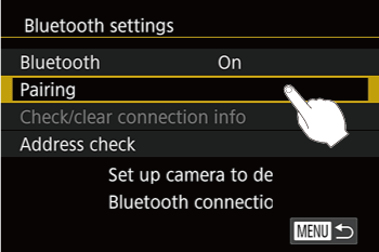 - 4] tab > [Wireless settings] > [Bluetooth settings]. Choose [Address check] to check the camera’s Bluetooth address.