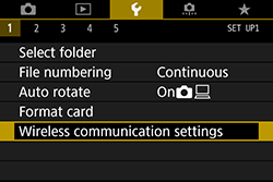 4. Select [Wireless communication settings] under the [ ] tab, then press < >.