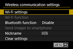 Press the <MENU> button to return to the [Wireless communication settings] screen.
