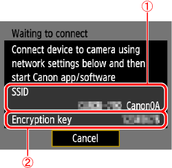 12. When the [Waiting to connect] screen is displayed on the camera, start Camera Connect on the smartphone.