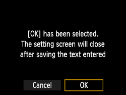 | Canceling the text entry | Press the DISP button to cancel text entry and exit. If a confirmation dialog is displayed, select [OK] to exit. |