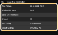 - <Wireless LAN Status> and <Latest Error Information> can be viewed from <Status Monitor>.