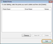 - If you click [Cleanup], then all files, directory information and other data related to all printers are deleted, not only for the selected printer but for all printers in the list. Normally you should use [Delete] to uninstall printer drivers. Click [Cleanup] when no printer is displayed in the list.