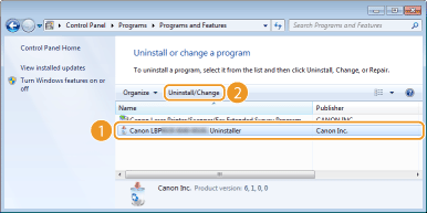 3. Select the printer driver that you want to uninstall, and click [Uninstall/Change] or [Change/Remove].