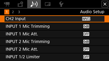 Audio Setup] > [CH2 Input]*2 Not available when the resolution is 1280x720.