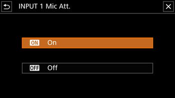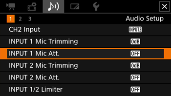 Audio Setup] > [INPUT 1 Mic Att.] or [INPUT 2 Mic Att.].